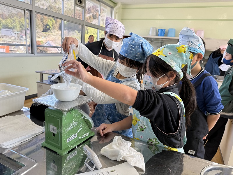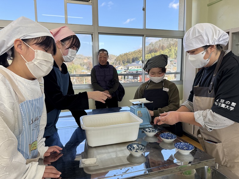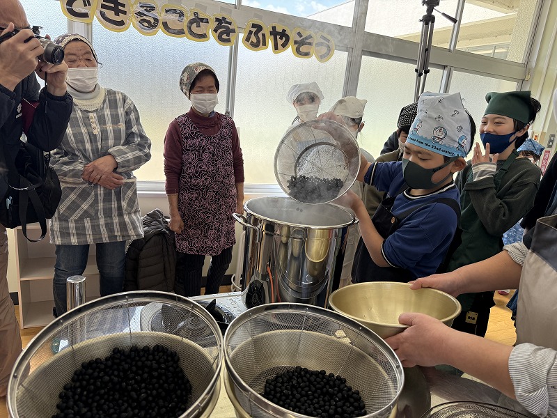2月18日(水)に、元ビーンズサワー工場に勤めていた方2名を招き、ビーンズサワーを作りました。総合の授業でビーンズサワーを復活させる活動を続けてきた集大成となる活動でした。子どもたちは、自分たちで分量をはかったり黒豆を洗ったりして一生懸命作っていました。クエン酸とグラニュー糖を入れるときに色が赤紫色にかわるのですが、その瞬間を見て「わあ!色が変わった!」「きれいな色になった!」と感動していました。黒豆栽培でお世話になった地域の方や、甲子園大学の学生、黒豆の館の職員の方などたくさんの大人もかかわってくださり、心に残る体験になりました。