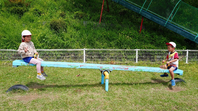 4月20日(月)に第1回の人権朝会をしました。おひさま教室にもある「トランポリン」を取り上げて、何のためにあるのか、どんな効果があるのかについて話を聞きました。