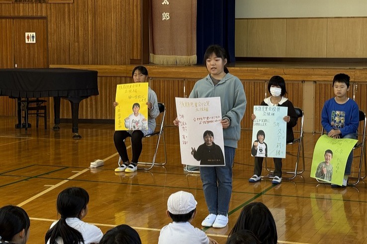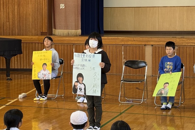 10月23日(木)に、後期児童会役員選挙を行いました。選挙には5・6年生の5名が立候補しました。立候補した児童は演説で、それぞれが目指す学校の姿や、学校をもっと良くしたいという熱い思いを全校児童に対し堂々と述べていました。その言葉の一つ一つから、やる気と決意が感じられました。