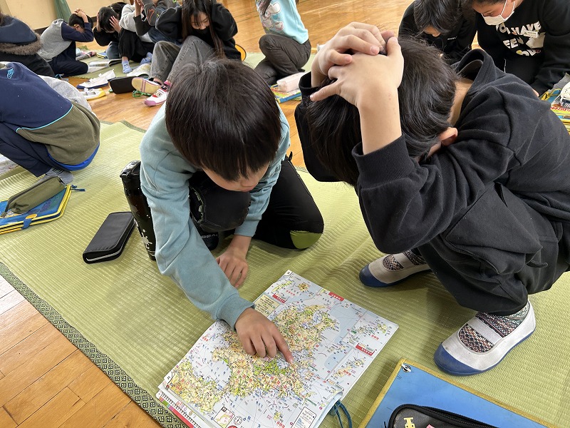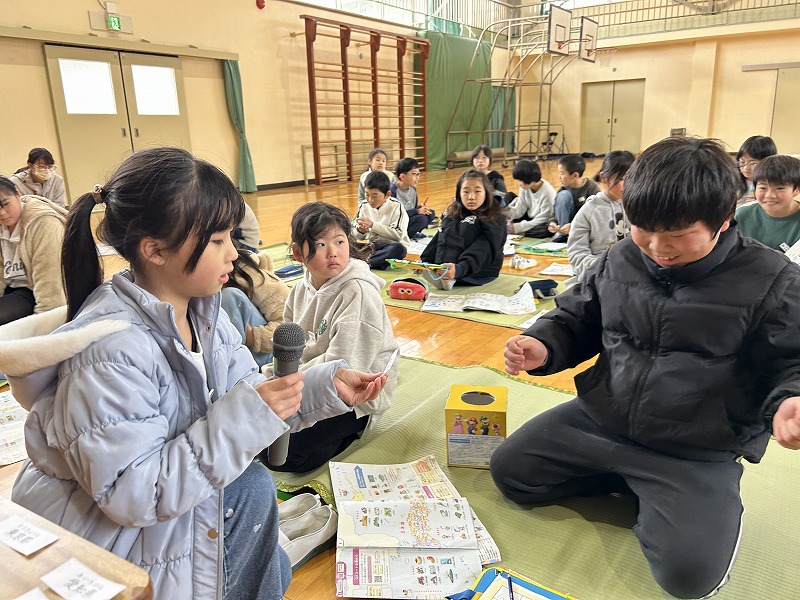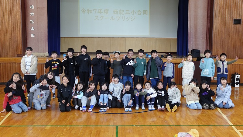 2月3日(火)に西紀三小学校の4年生合同でスクールブリッジがありました。今回は西紀北小学校に集まり、体育館で楽しく交流を行いました。北小クイズやドッチビー、地図帳バトルや都道府県ビンゴなどを行い、みんな笑顔で活動に取り組んでいました。西紀小学校と西紀南小学校が帰った後、「ほかの学校の友だちができた!」と嬉しそうに話す4年生もおり、来年の自然学校で会える楽しみが増えたようでした。